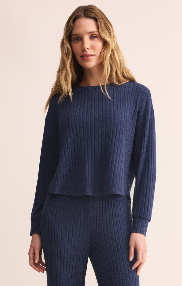 Z Supply Elfie Rib Long Sleeve Top in Blue Sapphire