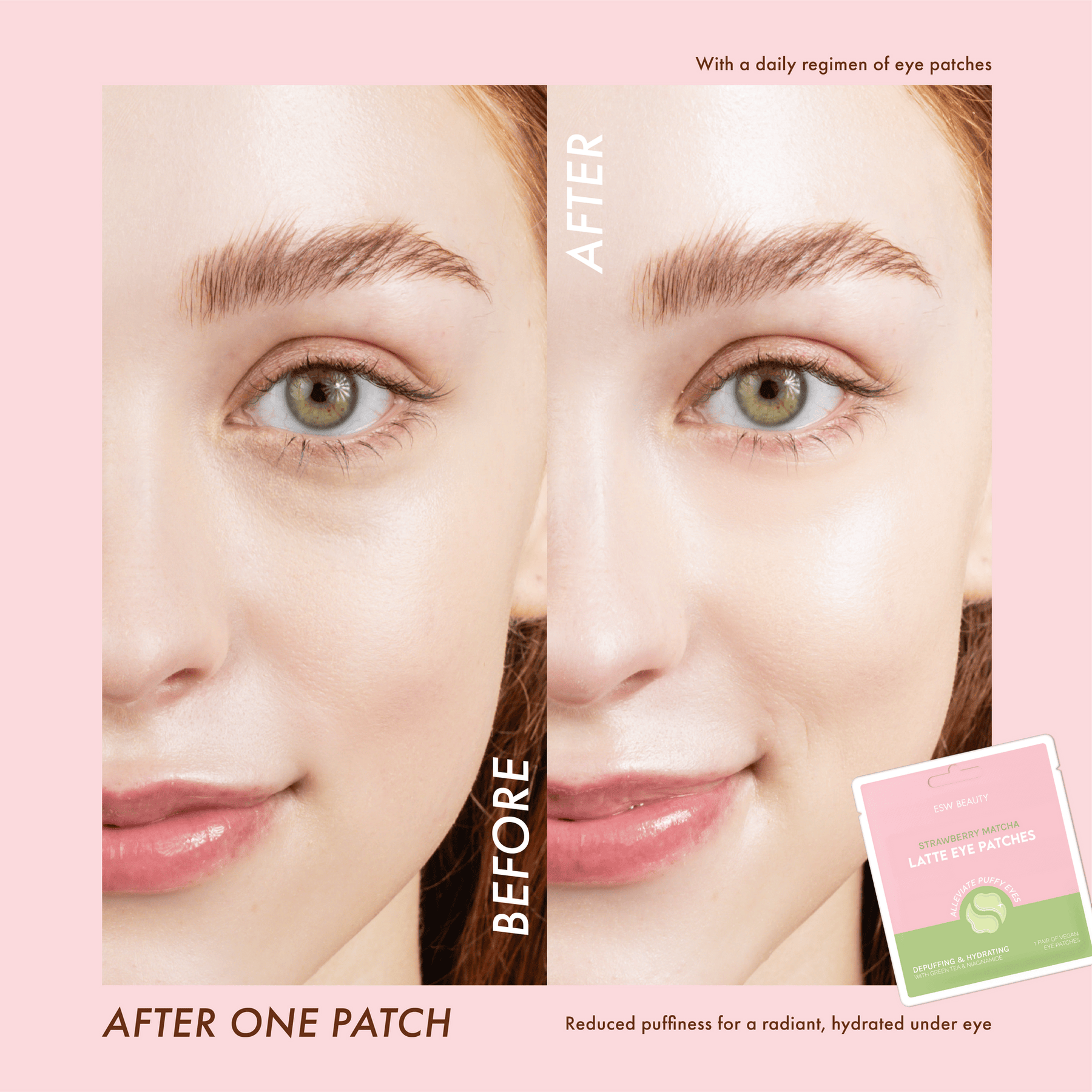 Introducing our Strawberry Matcha Latte Depuffing & Hydrating Eye Patches – our remedy designed to revive tired eyes and elevate your skincare experience. Infused with green tea extracts and niacinamide, this vegan hydrogel eye patch is your go-to solution for hydrating and reducing the appearance of puffiness under your eyes.