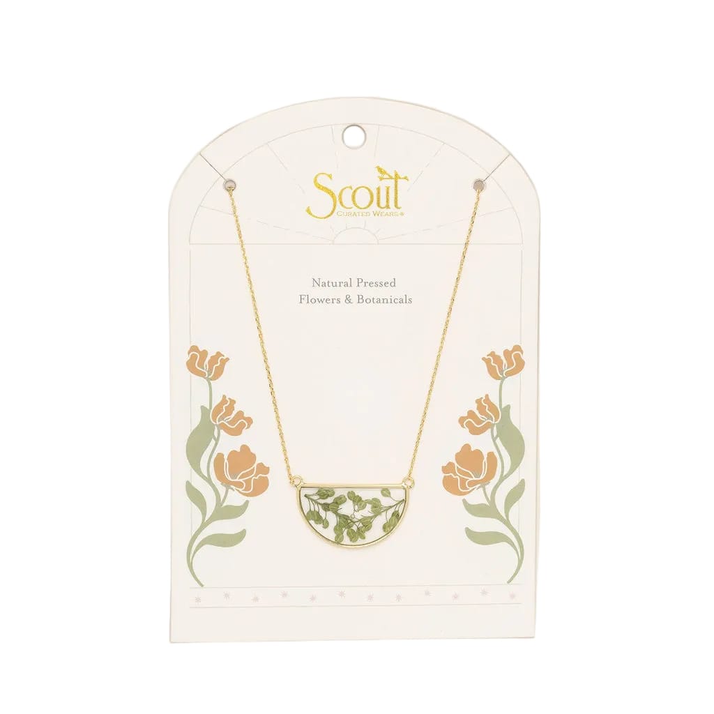A tiny piece of nature you can wear every day. The Scout Curated Wears Pressed Flower Necklace features real wild blooms carefully preserved in clear resin and accented with warm 14k gold dipped details. Each flower is naturally unique, capturing a moment of beauty from nature and turning it into a meaningful keepsake.