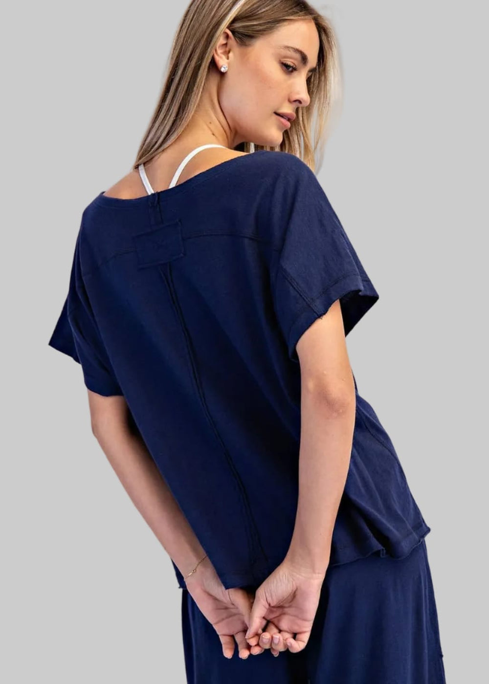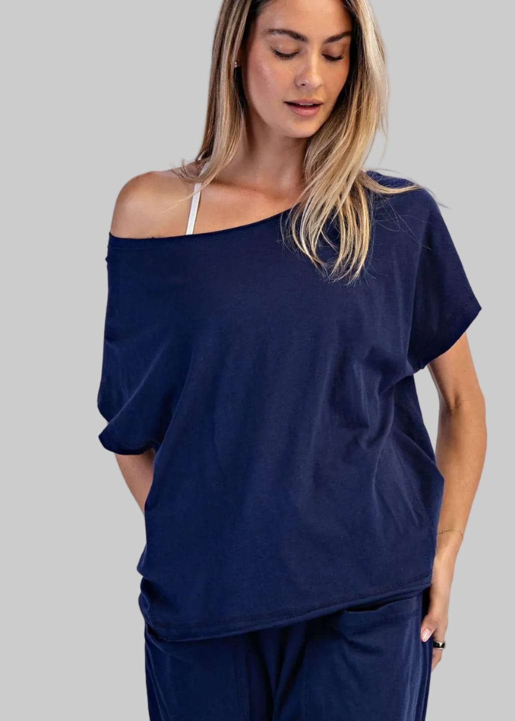 Cotton Slub Off the Shoulder Navy Tee