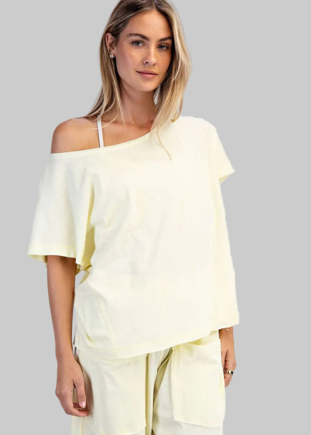 Cotton Slub Off the Shoulder Butter Yellow Tee